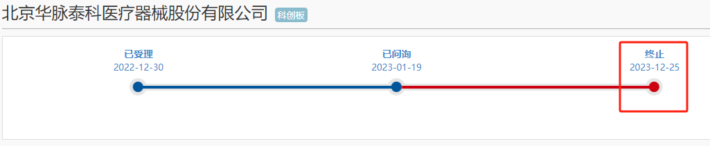 根据上交所官网的披露,因华脉泰科及其保荐人中信证券(19.840, -0.17, -0.85%)撤回发行上市申请,根据相关规定,上交所终止其发行上市审核。华脉泰科于2022年底上市申请获受理,3月底回复首轮问询,此后审核就处于停滞状态,直到如今撤回。