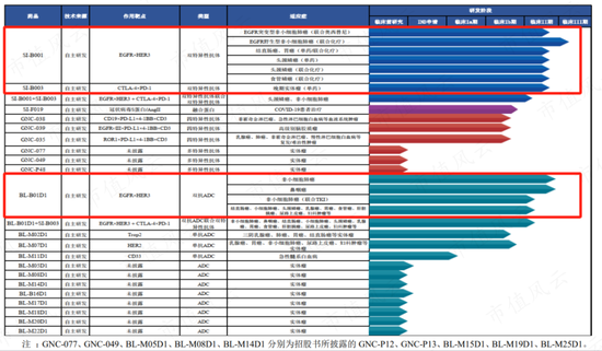 根据2023年中报,公司的BL-B01D1是全球独家处于临床阶段的可同时靶向EGFR和HER3的双抗ADC药物。
