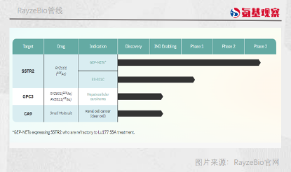 目前,RYZ101针对SSTR阳性GEP-NET适应症已进入III期临床,ES-SCLC适应症也已进入I期临床阶段。