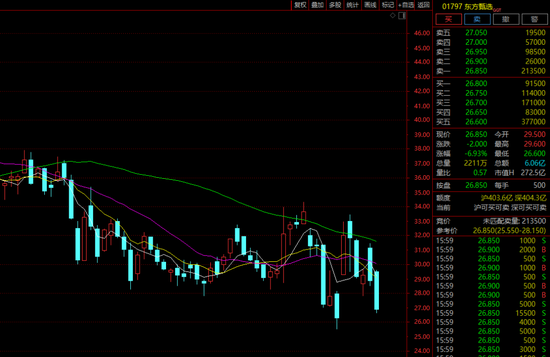 在首度披露拟向母公司新东方出售教育业务一个月后,12月27日晚,东方甄选在港交所公告,董事会已批准向母公司新东方建议出售教育业务,合计代价人民币15亿元。截至27日收盘,东方甄选跌6.93%,报26.85港元。