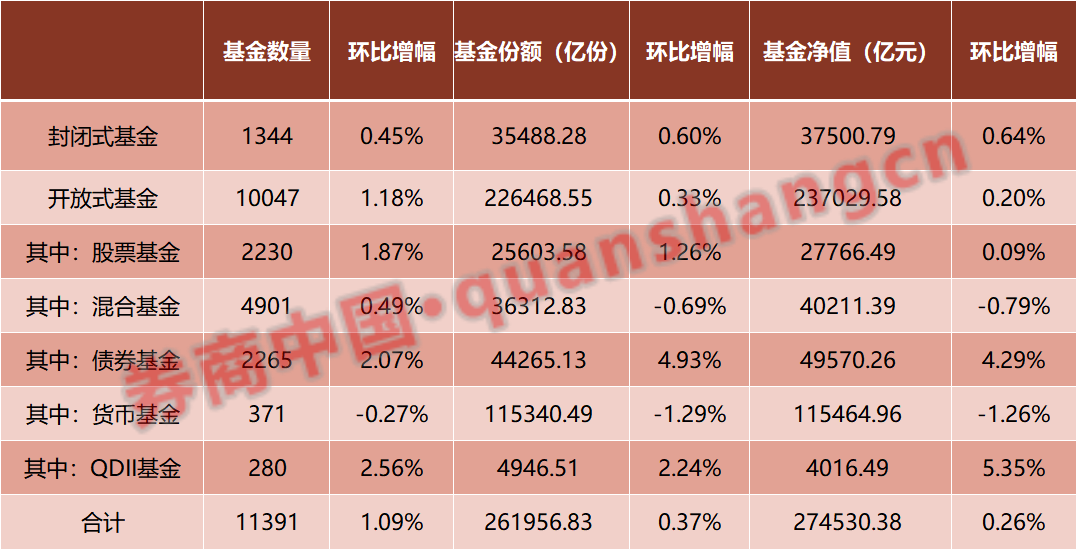 据中基协披露的最新数据显示,截至11月底,国内公募基金的最新总净值规模达到27.45万亿元,较上月增加711.75亿元;同时公募基金的总份额达到26.20万亿份,基金数量为1.14万只。