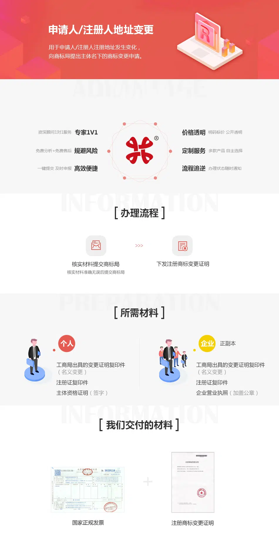 用于申请人/注册人注册地址发生变化,向商标局提出主体名下的商标变更申请