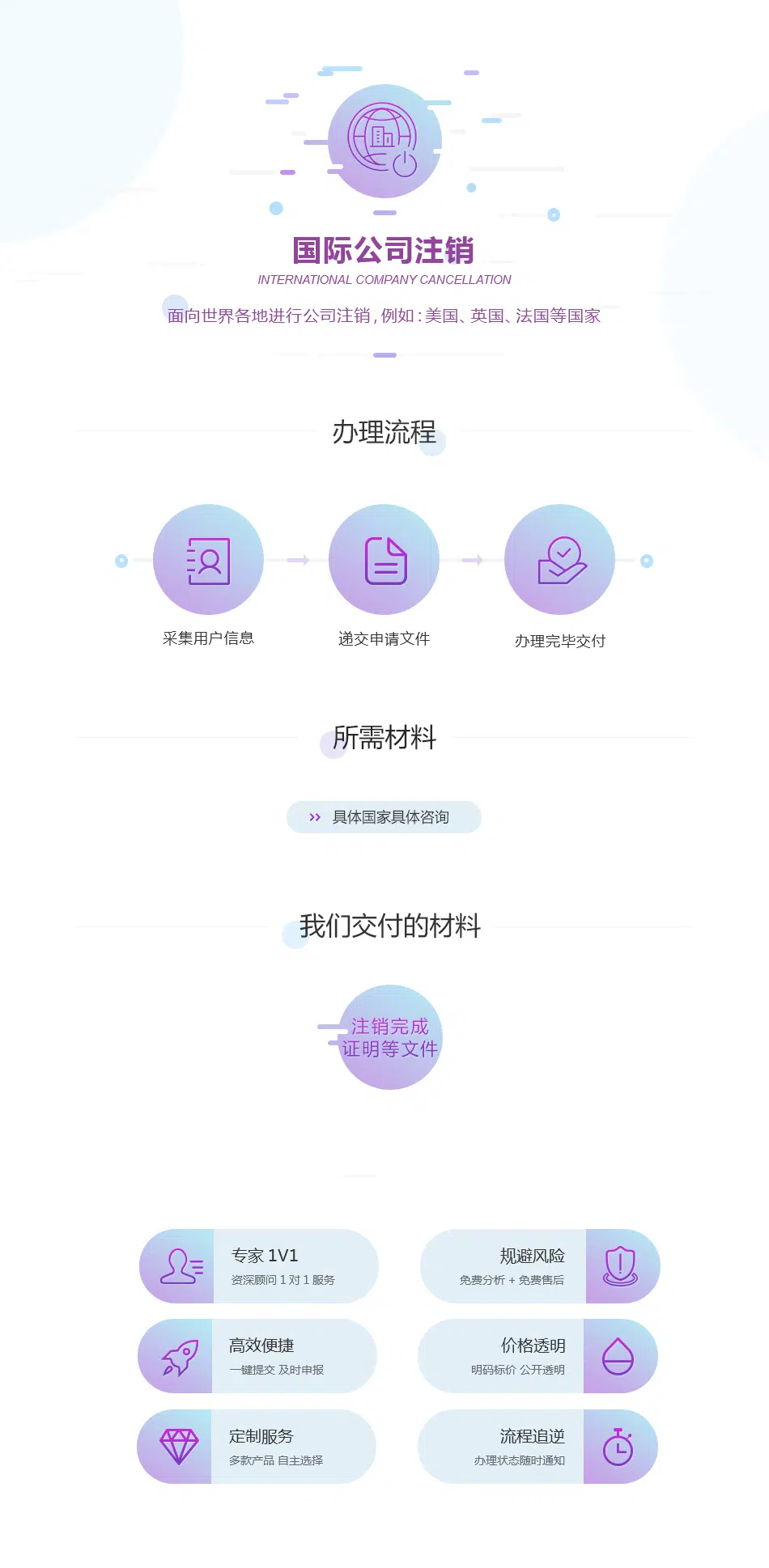 面向世界各地进行公司注销,例如:美国、英国、法国等国家